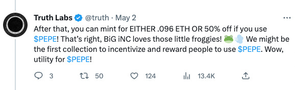 NFT collector RedBeard paid his Deadfellaz royalties with PEPE; Betty has since retired to Monaco on PEPE gains 😜