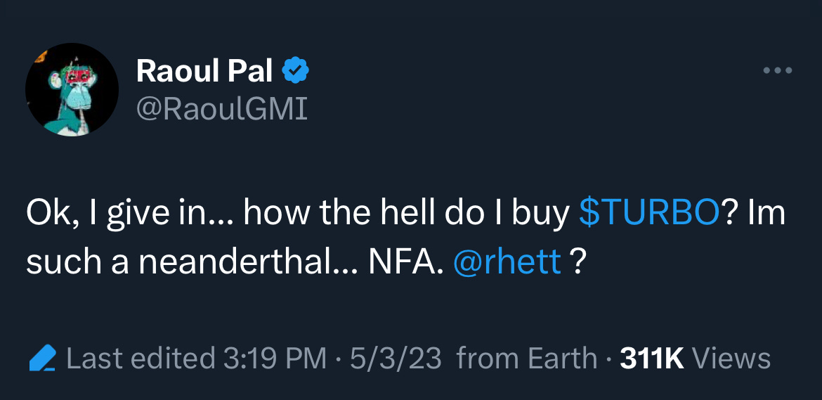 TURBO founder Rhett Mankind seems like a genuinely nice d00d who’s been building for the long haul, so if you’re FOMOing but meme coins aren’t your thing - and really, they shouldn’t be - he’s also a SuperRare artist with some killer pieces up for grabs